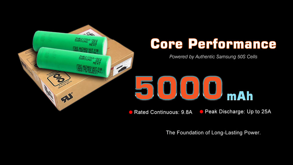 Built with 140 genuine Samsung 21700 50S cells - the industry standard for high-capacity, reliable lithium-ion technology.