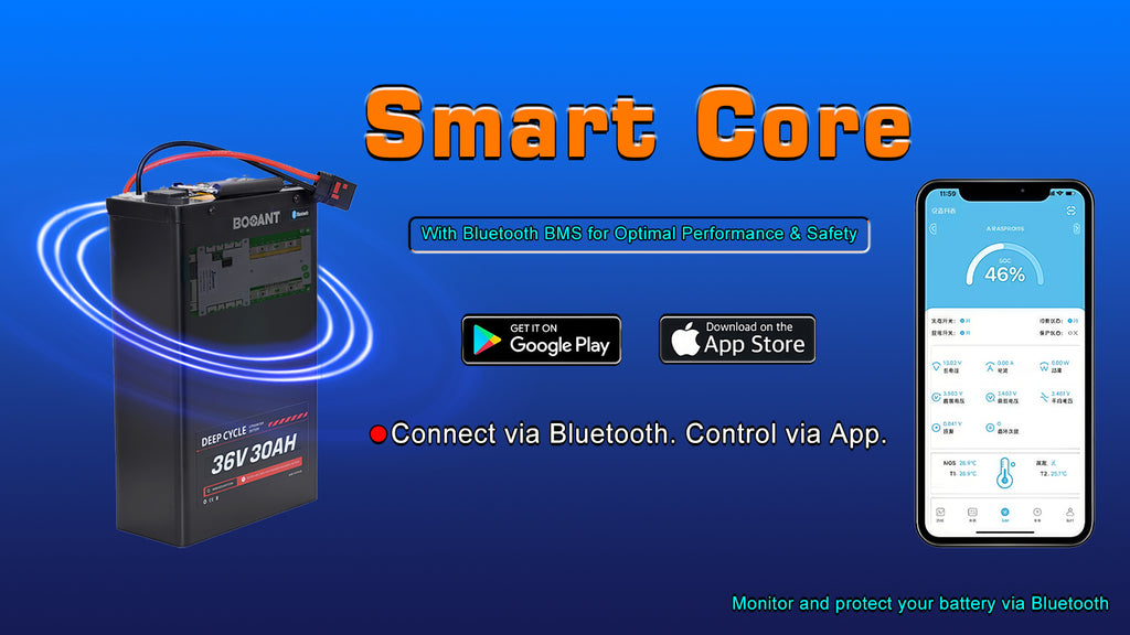 - 📱 App Control & Monitoring : Manage your 30AH e-bike battery right from your phone. The smart Bluetooth BMS lets you check the 36V lithium battery's status and control it remotely for security and peace of mind.