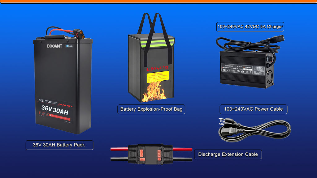 - 🛡️ Built Tough. Ride Safe : The rugged, waterproof 36V lithium battery casing protects against impacts and weather. The smart BMS and included fireproof bag provide all-around safety for your rides.