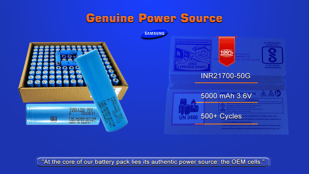 - Premium Cells: Genuine Samsung 50G Li-ion cells with a cycle life of over 800 cycles