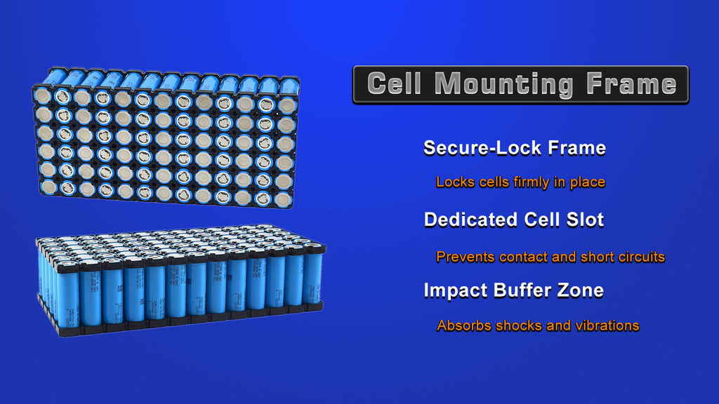 ABS cell holders ensure uniform performance across the battery pack.